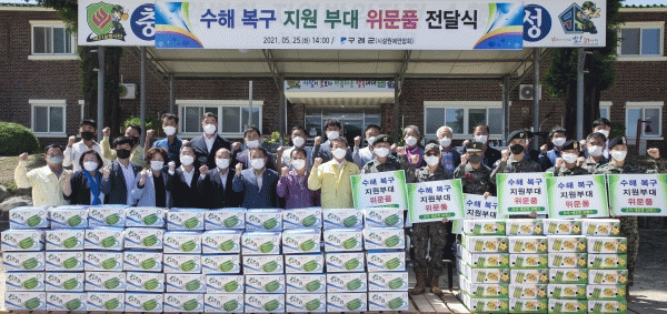 [¹Ìµð¾îÀü³² Á¦°¥´ëÁ¾ ±âÀÚ] Àü³² ±¸·ÊÀÇ ³ó¾÷ÀεéÀÌ Áö³ÇØ ¼öÇØº¹±¸ ´ë¹ÎÁö¿ø¿¡ ³ª¼ÁØ ±ººÎ´ë À庴µé¿¡°Ô Á¤¼ºµé¿© °¡²Û ½Ã¼³Ã¤¼Ò·Î °¨»çÀÇ ¸¶À½À» Àü´ÞÇß´Ù. ±¸·Ê±ºÀº 25ÀÏ ±¸·Ê±º½Ã¼³¿ø¿¹¿¬ÇÕȸ°¡ ¼öÇØ º¹±¸¸¦ À§ÇØ Çå½ÅÇß´ø 7°³ ¡¦