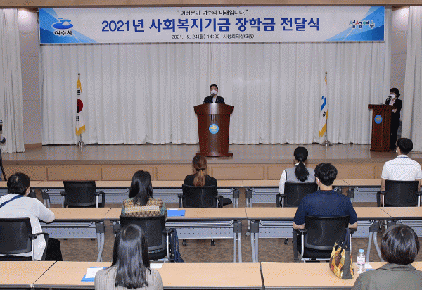 [¹Ìµð¾îÀü³² ÀüÇü¼º ±âÀÚ] ¿©¼ö½Ã°¡ »çȸº¹Áö±â±ÝÀ¸·Î Àú¼Òµæ°¡Á¤ Çлýµé¿¡°Ô ÀåÇÐ±Ý 5000¸¸¿øÀ» Áö±ÞÇØ Äڷγª19·Î ¾î·Á¿î Àú¼Òµæ °¡Á¤¿¡ µçµçÇÑ ÈûÀ» º¸ÅÉ´Ù. ½Ã¿¡ µû¸£¸é Áö³ 24ÀÏ ½Ãû ȸÀǽǿ¡¼ 2021³â ¿©¼ö½Ã »çȸº¹Áö±â±Ý ÀåÇС¦