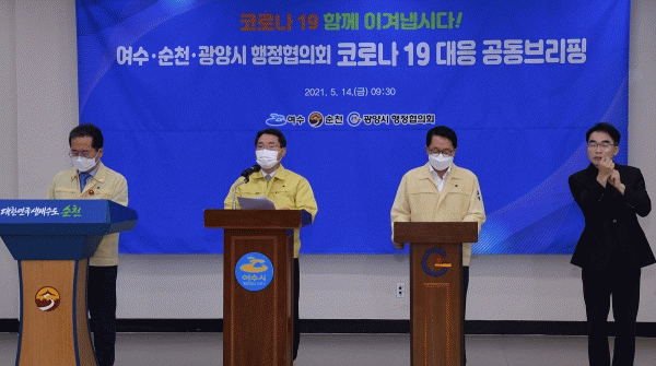 [¹Ìµð¾îÀü³² ÀüÇü¼º ±âÀÚ] ¿©¼ö¼øÃµ±¤¾ç½Ã ÇàÁ¤ÇùÀÇȸ´Â Áö³ 14ÀÏ 9:30 ¼øÃµ ½Å´ë°Ç°»ýȰÁö¿ø¼¾ÅÍ¿¡¼ Äڷγª19 ´ëÀÀ °øµ¿ºê¸®ÇÎÀ» °³ÃÖÇß´Ù°í ¹àÇû´Ù. ÃÖ±Ù Àü³² µ¿ºÎ±ÇÀÇ À¯ÈïÁÖÁ¡ ¹× ³ªÀÌÆ®Å¬·´ ¹ß Äڷγª19 °¨¿°ÀÌ È®»êµÊ¿¡ µû¡¦