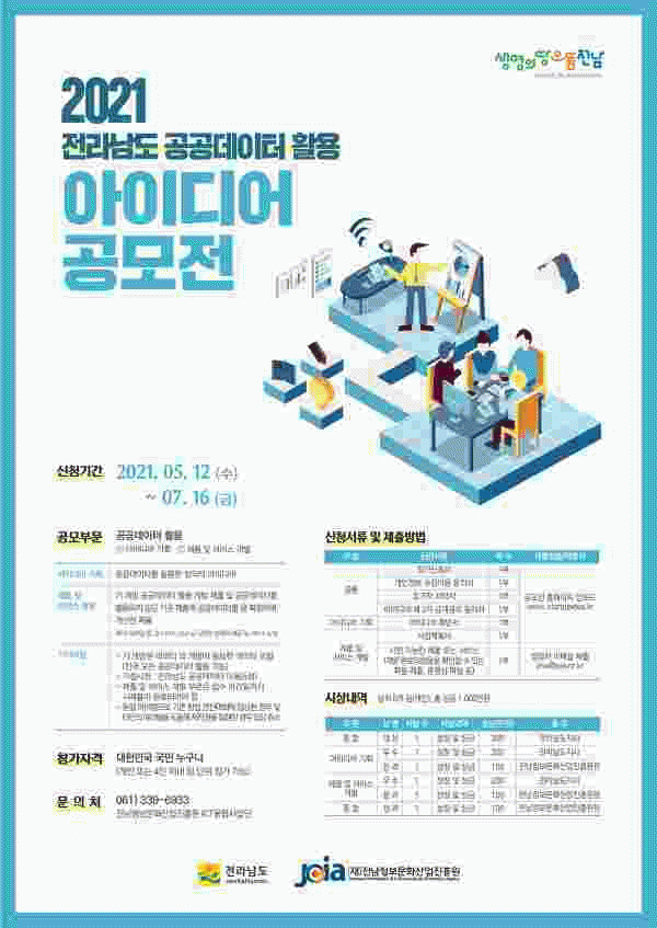 [¹Ìµð¾îÀü³² Á¦°¥´ëÁ¾ ±âÀÚ] Àü¶ó³²µµ´Â Àü³²Á¤º¸¹®È»ê¾÷ÁøÈï¿ø°ú ÇÔ²² °ø°øµ¥ÀÌÅÍ È°¼ºÈ ¹× Çõ½Åâ¾÷ ÃËÁøÀ» À§ÇØ ¡®2021³â Àü¶ó³²µµ °ø°øµ¥ÀÌÅÍ È°¿ë ¾ÆÀ̵ð¾î °ø¸ðÀü¡¯À» °³ÃÖÇÑ´Ù. °ø¸ðÀüÀº ¡®¾ÆÀ̵ð¾î ±âȹ¡¯°ú ¡®Á¦Ç° ¹× ¼ºñ½º¡¦