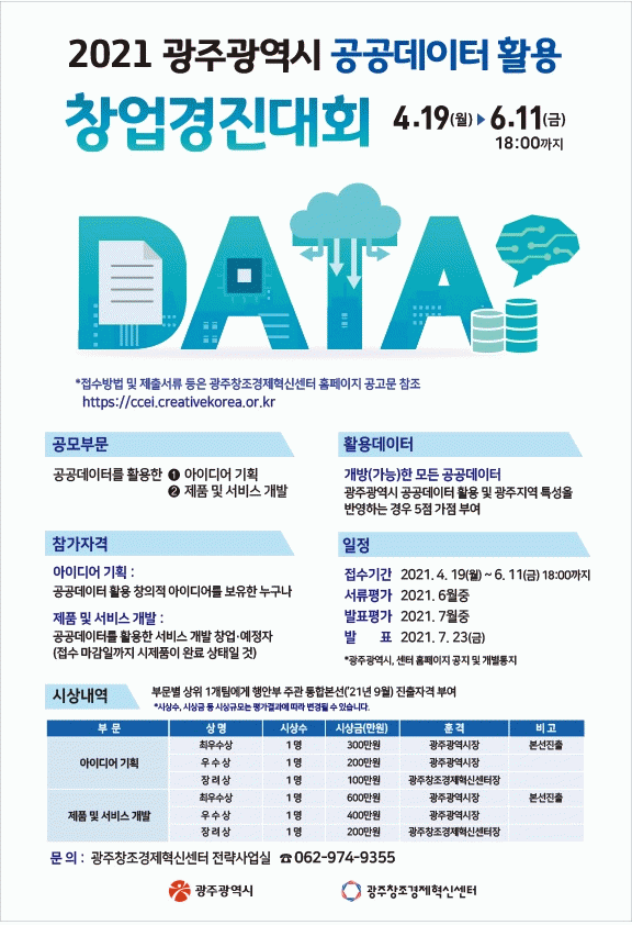 [¹Ìµð¾îÀü³² Á¦°¥´ëÁ¾ ±âÀÚ] ±¤ÁÖ±¤¿ª½Ã´Â °ø°øµ¥ÀÌÅ͸¦ Ȱ¿ëÇÑ Ã¢ÀÇÀû ¾ÆÀ̵ð¾î¿Í ½Å±Ô ºñÁî´Ï½º ¸ðµ¨À» ¹ß±¼ÇÏ°í °ø°øµ¥ÀÌÅÍ ±â¹ÝÀÇ Ã¢¾÷ Ȱ¼ºÈ¸¦ À§ÇÑ ¡®2021³â ±¤Áֽà °ø°øµ¥ÀÌÅÍ È°¿ë â¾÷°æÁø´ëȸ¡¯¸¦ °³ÃÖÇÑ´Ù. ±¤Áֽð¡ ÁÖÃÖÇÏ¡¦