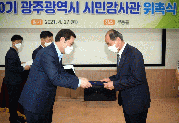 [¹Ìµð¾îÀü³² Á¦°¥´ëÁ¾ ±âÀÚ] Á¦10±â ±¤ÁÖ±¤¿ª½Ã ½Ã¹Î°¨»ç°ü 50¸íÀÌ 5¿ùºÎÅÍ º»°ÝÀûÀΠȰµ¿¿¡ µé¾î°£´Ù. À̿뼷 ½ÃÀåÀº 27ÀÏ ½Ãû ¹«µîȦ¿¡¼ °ø¸ð¸¦ ÅëÇØ ¼±¹ßµÈ Á¦10±â ½Ã¹Î°¨»ç°ü 50¸í¿¡°Ô À§ÃËÀåÀ» Àü´ÞÇß´Ù. À̹ø¿¡ ¼±¹ßµÈ ½Ã¹Î°¨»ç¡¦