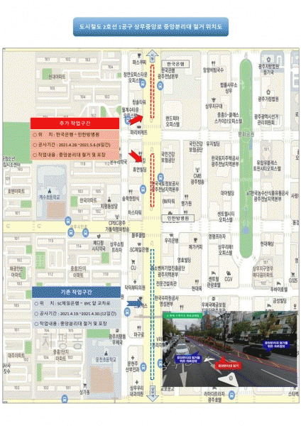 [¹Ìµð¾îÀü³² Á¦°¥´ëÁ¾ ±âÀÚ] ±¤ÁÖ±¤¿ª½Ã µµ½Ãöµµ°Ç¼³º»ºÎ´Â »ó¹«Áß¾Ó·Î ÀÛ¾÷±¸°£À» È®´ëÇϱâ À§ÇØ ¿À´Â 28ÀϺÎÅÍ Çѱ¹ÀºÇà °Ç¹° ¾Õ »ç°Å¸®ºÎÅÍ ¹ÎÇѹ溴¿ø °Ç¹° ¾Õ »ç°Å¸®±îÁö 362m ±¸°£¿¡ ´ëÇÑ Ãß°¡ °ø»ç¸¦ ½ÃÀÛÇÑ´Ù. À̹ø °ø»ç´Â Áö³¡¦