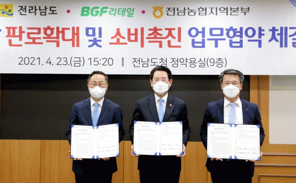 [¹Ìµð¾îÀü³² Á¦°¥´ëÁ¾ ±âÀÚ] Àü¶ó³²µµ¿Í BGF¸®Å×ÀÏ¡¤³óÇùÀü³²Áö¿ªº»ºÎ°¡ Àü³²»ê °íǰÁú ³ó»ê¹° »ý»ê¡¤°ø±Þ°ú ÆÇ·Î È®´ë¸¦ À§ÇØ ¼ÕÀ» ¸ÂÀâ¾Ò´Ù. Àü³²µµ´Â 23ÀÏ µµÃ»¿¡¼ ±è¿µ·Ï µµÁö»ç, À̰ÇÁØ BGF ¸®Å×ÀÏ »çÀå, ¹Ú¼È« ³óÇùÀü³²Áö¿ªº»¡¦