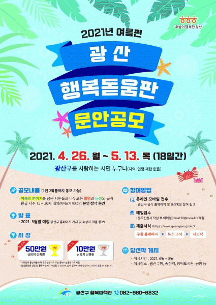 [¹Ìµð¾îÀü³² ±èÁ¤¿ì ±âÀÚ] ±¤ÁÖ ±¤»ê±¸´Â ¿©¸§À» ¸Â¾Æ ¡®±¤»êÇູµ¸¿òÆÇ¡¯ ¹®¾ÈÀ» °ø¸ðÇÑ´Ù. À̹ø °ø¸ð ÁÖÁ¦´Â ¡®¿©¸§ÀÇ ºÐÀ§±â¸¦ ´ãÀº ½Ã¹Îµé°ú ³ª´©°íÇ Èñ¸Á°ú ÀÀ¿øÀÇ ±Û±Í¡¯·Î 26ÀϺÎÅÍ 5¿ù13ÀϱîÁö ÁøÇàµÈ´Ù. ½Ä¹°µéÀÌ ¾¦¾¦ Ä¿³ª¡¦