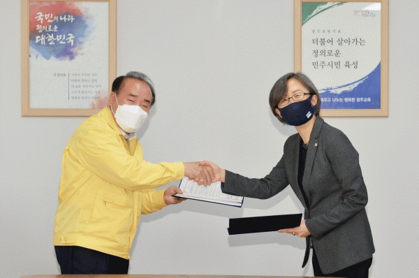[¹Ìµð¾îÀü³² Á¦°¥´ëÁ¾ ±âÀÚ] ±¤ÁÖ¼ºÎ±³À°Áö¿øÃ»ÀÌ 21ÀÏ Ã»³» Ãʵ±¸½Ç¿¡¼ ¡®Áö½Ä¼ºñ½º»ê¾÷Àü¹®ÁøÈï¿ø¡¯°ú Çлý Áø·Î ¹× Á÷¾÷üÇè±³À° Ȱ¼ºÈ¸¦ À§ÇÑ ¾÷¹«Çù¾àÀ» ü°áÇß´Ù. À̹ø ¾÷¹«Çù¾àÀº ¹Ì·¡»çȸ Çٽɿª·® Áß ÇϳªÀΠâÀǼº°ú ¡¦