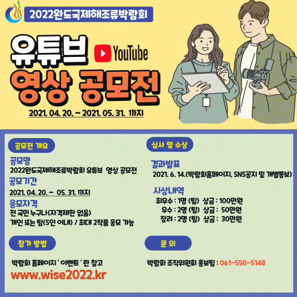 [¹Ìµð¾îÀü³² Á¦°¥´ëÁ¾ ±âÀÚ] ¿Ïµµ±¹Á¦ÇØÁ¶·ù¹Ú¶÷ȸ Á¶Á÷À§¿øÀåÀº ÇØÁ¶·ù¸¦ ÁÖÁ¦·Î °³ÃֵǴ 2022¿Ïµµ±¹Á¦ÇØÁ¶·ù¹Ú¶÷ȸ À¯Æ©ºê ¿µ»ó °ø¸ðÀüÀ» °³ÃÖÇÑ´Ù°í ¹àÇû´Ù. °ø¸ðÀüÀº 4¿ù 20ÀϺÎÅÍ 5¿ù 31ÀϱîÁö ÁøÇàµÈ´Ù. ¹Ú¶÷ȸ»ç¹«±¹ °ü°èÀÚ¿¡¡¦