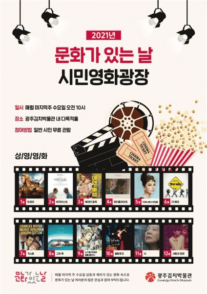 [¹Ìµð¾îÀü³² Á¦°¥´ëÁ¾ ±âÀÚ] ±¤ÁÖ±¤¿ª½Ã±èġŸ¿îÀº ¸Å´Þ ¸¶Áö¸· ¼ö¿äÀÏ ¡®¹®È°¡ ÀÖ´Â ³¯¡¯ Çà»ç·Î ¡®½Ã¹Î¿µÈ±¤À塯 ÇÁ·Î±×·¥À» ÁøÇàÇϰí ÀÖ´Ù. ½Ã¹Î¿µÈ±¤ÀåÀº ¸íÀÛ ¿µÈ¸¦ ¾ö¼±ÇØ ¸Å¿ù ¸¶Áö¸· ¼ö¿äÀÏ ¿ÀÀü 10½Ã ±¤ÁÖ±èġŸ¿î ³» ±èÄ¡¡¦