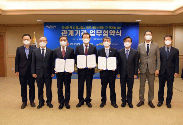 [¹Ìµð¾îÀü³² Á¦°¥´ëÁ¾ ±âÀÚ] ±¤ÁÖ±¤¿ª½Ã¿Í »ê¸²Ã», Çѱ¹¼ö¸ñ¿ø°ü¸®¿øÀÌ ±¤Áֽø³¼ö¸ñ¿ø°ú µµ½É±Ç¿ª »ê¸²»ç¾÷À» ¿¬°èÇÑ ¸íǰ »ê¸²¹®È¡¤ÈÞ¾ç°ø°£ Á¶¼º¿¡ ¼ÕÀ» ¸ÂÀâ¾Ò´Ù. ±¤Áֽô 20ÀÏ ¿ÀÀü ½Ãû ºñÁî´Ï½º·ë¿¡¼ À̿뼷 ½ÃÀå, ÃÖº´¾Ï »ê¸²¡¦