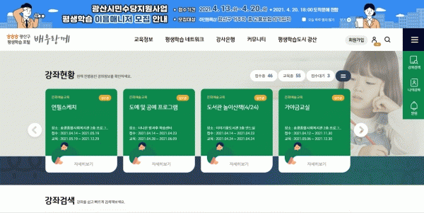 [¹Ìµð¾îÀü³² ±èÁ¤¿ì ±âÀÚ] ±¤ÁÖ ±¤»ê±¸°¡ ±¤»ê±¸ÀÇ ±³À° Á¤º¸¸¦ Çѵ¥ ¸ðÀº Æò»ýÇнÀÆ÷ÅÐ ¹è¿ì¶û²²¸¦ Á¤½Ä ¿ÀÇÂÇß´Ù. ¿øÇÏ´Â ÇÁ·Î±×·¥À» ã´Â °ÍºÎÅÍ ¼ö° ½Åû±îÁö °£ÆíÇÏ°Ô ÇÒ ¼ö ÀÖ´Â ¡®¿ø½ºÅ顯 Ç÷§ÆûÀÌ ¼±À» º¸ÀÎ °Í.±¤»ê±¸´Â ¡®Æò¡¦