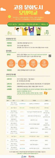 [¹Ìµð¾îÀü³² Á¦°¥´ëÁ¾ ±âÀÚ] °íÈﱺÀº ¡®°íÈï ¹®Èµµ½Ã ¸ðÅÆÇб³¡¯¸¦ 2021³â 5¿ù 12ÀÏ~7¿ù 28ÀϱîÁö ¿î¿µÇÑ´Ù°í ¹àÈ÷°í ±º¹ÎµéÀÇ ¸¹Àº Âü¿©¸¦ ºÎŹÇß´Ù. Âü¿©´ë»óÀº °íÈï ¹®Èµµ½Ã¸¦ ¸¸µé¾î °¥ ´©±¸³ª Âü¿© °¡´ÉÇϸç Âü¿© ½ÅûÀº 5¿ù 7ÀÏ¡¦