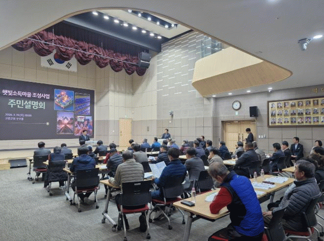 [¹Ìµð¾îÀü³² Á¦°¥´ëÁ¾ ±âÀÚ]°íÈﱺÀº Áö³ 19ÀÏ ±ºÃ» ¿ìÁÖȦ¿¡¼ ÇÞºû¼Òµæ¸¶À» Á¶¼ºÀ» Èñ¸ÁÇÏ´Â ¸¶À» ÀÌÀå°ú ÁֹΠ80¿© ¸íÀÌ Âü¼®ÇÑ °¡¿îµ¥ ¡®ÇÞºû¼Òµæ¸¶À» Á¶¼º »ç¾÷¡¯ ÁֹΠ¼³¸íȸ¸¦ °³ÃÖÇß´Ù°í ¹àÇû´Ù. À̹ø ¼³¸íȸ´Â Á¤ºÎ ±¹Á¤°úÁ¦ÀΡ¦