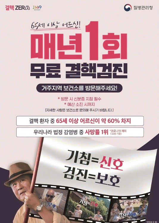 [¹Ìµð¾îÀü³² Á¦°¥´ëÁ¾ ±âÀÚ]ȼø±ºÀº 65¼¼ ÀÌ»ó ¾î¸£½ÅÀ» ´ë»óÀ¸·Î ¸Å³â 1ȸ ¹«·á °áÇÙ °ËÁøÀ» ¿¬Áß ½Ç½ÃÇϰí ÀÖ´Ù°í 10ÀÏ ¹àÇû´Ù. °áÇÙÀº ±âħ, Àçä±â µîÀ» ÅëÇØ °ø±â·Î ÀüÆÄµÇ´Â °¨¿°º´ÀÌ´Ù. ÁÖ¿ä Áõ»óÀ¸·Î´Â 2ÁÖ ÀÌ»ó Áö¼ÓµÇ´Â ±â¡¦
