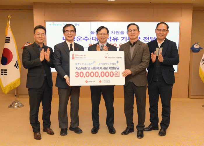 [¹Ìµð¾îÀü³² Á¦°¥´ëÁ¾ ±âÀÚ]±¤ÁÖÁö¿ª Áß°ß±â¾÷ÀÎ ´ëâ¿î¼ö¿Í ´ëâ¼®À¯°¡ ±¤Áֽÿ¡ ÀÌ¿ôµ½±â ¼º±Ý 3000¸¸¿øÀ» Àü´ÞÇß´Ù. ±¤ÁÖ±¤¿ª½Ã´Â 22ÀÏ ½Ãû ºñÁî´Ï½º·ë¿¡¼ ´ëâ¿î¼ö¿Í ´ëâ¼®À¯ÀÇ ±âºÎ±Ý Àü´Þ½ÄÀ» °³ÃÖÇß´Ù. À̳¯ Àü´Þ½Ä¿¡´Â °í±¤¡¦