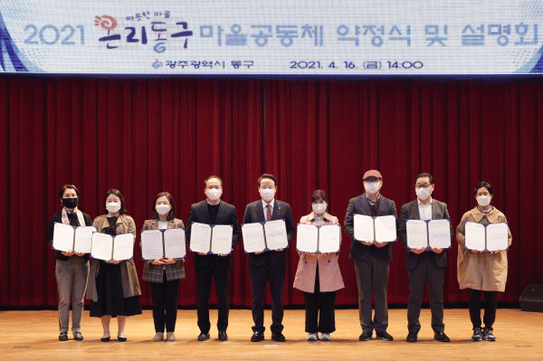 [¹Ìµð¾îÀü³² ±èÁ¤¿ì ±âÀÚ] ±¤ÁÖ µ¿±¸´Â Áö³ 16ÀÏ ¡®2021³â µû¶æÇÑ ¸¶À» ¿Â¸®µ¿±¸ ¸¶À»¸¸µé±â Áö¿ø °ø¸ð»ç¾÷¡¯¿¡ ¼±Á¤µÈ 52°³ °øµ¿Ã¼¿Í ¾àÁ¤À» ü°áÇÏ°í ¼³¸íȸ¸¦ °³ÃÖÇß´Ù°í ¹àÇû´Ù. À̳¯ Çà»ç´Â 52¸íÀÇ °øµ¿Ã¼ °ü°èÀÚ°¡ Âü¼®ÇÑ °¡¿îµ¥¡¦