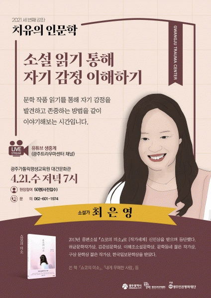 [¹Ìµð¾îÀü³² Á¦°¥´ëÁ¾ ±âÀÚ] ±¤ÁÖ±¤¿ª½Ã Æ®¶ó¿ì¸¶¼¾ÅÍ´Â 21ÀÏ ±¤ÁÖ°¡Å縯Æò»ý±³À°¿ø ´ë°Ç¹®È°ü¿¡¼ 4¿ù Ä¡À¯ÀÇ Àι®ÇÐÀ» °³ÃÖÇÑ´Ù. À̹ø °¿¬Àº ¼Ò¼³°¡ ÃÖÀº¿µ ¾¾°¡ ¡®¼Ò¼³ Àбâ ÅëÇØ Àڱ⠰¨Á¤ ÀÌÇØÇϱ⡯¶ó´Â ÁÖÁ¦·Î ¹®ÇÐÀÛǰ Àб⸦¡¦