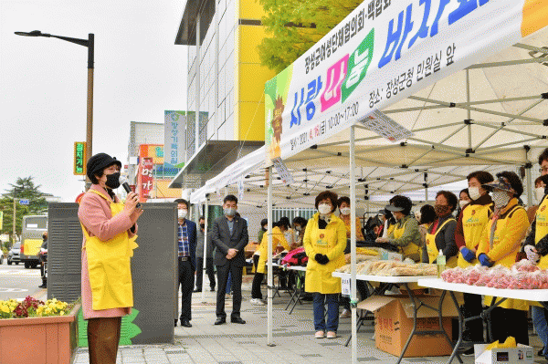 [¹Ìµð¾îÀü³² ±è±âö ±âÀÚ] À强±º¿©¼º´ÜüÇùÀÇȸ¿Í ¹éÇÕȸ°¡ 16ÀÏ À强±ºÃ» ¹Î¿ø½Ç ¾Õ¿¡¼ ¡®»ç¶û³ª´®¹ÙÀÚȸ¡¯¸¦ ¿¾ú´Ù. ÀÏÂġ Çà»çÀå¿¡ ¸ðÀÎ 40¿©¸íÀÇ ´Üü ȸ¿øµéÀº ¹Ì¸® ÁغñÇÑ ¹ÙÀÚȸ ¹°Ç°µéÀ» ÆÇ¸Å´ë¿¡ Áø¿ÇÏ°í ¼Õ´Ô¸ÂÀÌ¿¡ ³ª¡¦