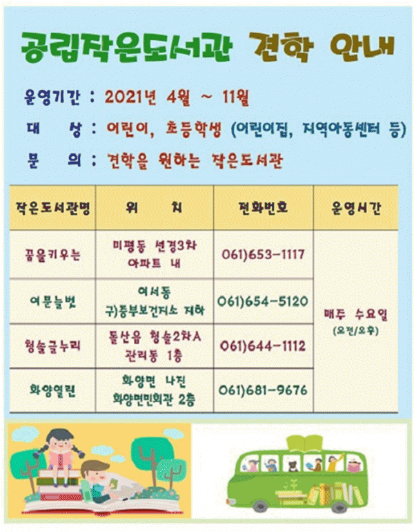 [¹Ìµð¾îÀü³² ÀüÇü¼º ±âÀÚ] ¿©¼ö½Ã °ø¸³ ÀÛÀºµµ¼°üÀÌ ¾î¸°À̵鿡°Ô Ã¥¿¡ ´ëÇÑ Èï¹Ì¸¦ °¡Áú ¼ö ÀÖ´Â °è±â¸¦ ¸¶·ÃÇϱâ À§ÇØ °ßÇÐ Âü¿©±â°üÀ» ¸ðÁýÇÑ´Ù°í ¹àÇû´Ù. ½Ã¿¡ µû¸£¸é µµ¼°ü ÀÌ¿ë¾È³» ¿µ»óÀ¸·Î Èï¹Ì·Ó°Ô Á¢±ÙÇÏ°í µ¿È ±¸¿¬ µî ´Ù¡¦