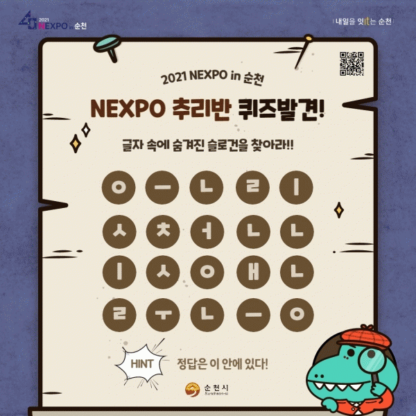 [¹Ìµð¾îÀü³² ÀüÇü¼º ±âÀÚ] ¼øÃµ½Ã´Â ¡®2021 NEXPO in ¼øÃµ¡¯ÀÇ È«º¸¿Í °ø½Ä SNS ä³Î Ȱ¼ºÈ¸¦ À§ÇØ Ã߸® À̺¥Æ®¸¦ ÁøÇàÇÑ´Ù. ¡®NEXPO Ã߸®¹Ý ÄûÁî¹ß°ß ±ÛÀÚ ¼Ó¿¡ ¼û°ÜÁø ½½·Î°ÇÀ» ã¾Æ¶ó¡¯¶ó´Â ÁÖÁ¦·Î ÃßÁøµÇ´Â À̹ø À̺¥Æ®´Â ¹Ú¶÷ȸ °ø¡¦