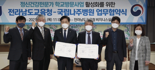 [¹Ìµð¾îÀü³² Á¦°¥´ëÁ¾ ±âÀÚ] Àü¶ó³²µµ±³À°Ã»°ú ±¹¸³³ªÁÖº´¿øÀÌ 4¿ù 15ÀÏ Àü¶ó³²µµ±³À°Ã»¿¡¼ Àå¼®¿õ ±³À°°¨, À±º¸Çö º´¿øÀåÀ» ºñ·ÔÇÑ µÎ ±â°ü °ü°èÀÚµéÀÌ Âü¼®ÇÑ °¡¿îµ¥ Á¤½Å°Ç°Àü¹®°¡ Çб³¹æ¹®»ç¾÷ Ȱ¼ºÈ¸¦ À§ÇÑ ¾÷¹«Çù¾àÀ» ü°áÇß´Ù.¡¦