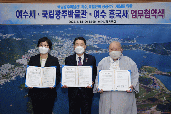 [¹Ìµð¾îÀü³² ÀüÇü¼º ±âÀÚ] ¿©¼ö½Ã°¡ ³»³â 5¿ùºÎÅÍ 8¿ù±îÁö ±¹¸³±¤ÁÖ¹Ú¹°°ü ±âȹÀü½Ã½Ç¿¡¼ ¿¸®´Â ¡®¿©¼ö Ưº°Àü¡¯ ¼º°ø°³ÃÖ¸¦ À§ÇØ Áö³ 14ÀÏ ¿ÀÈÄ ½ÃÀå½Ç¿¡¼ ±¹¸³±¤ÁÖ¹Ú¹°°ü, ¿©¼ö Èï±¹»ç¿Í ¾÷¹«Çù¾àÀ» ü°áÇß´Ù. À̳¯ ±Ç¿ÀºÀ ¿©¼ö½Ã¡¦