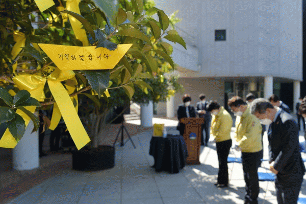 [¹Ìµð¾îÀü³² ±èÁ¤¿ì ±âÀÚ] ±¤ÁÖ±¤¿ª½Ã ¼±¸°¡ 4.16 ¼¼¿ùÈ£ Âü»ç 7Áֱ⸦ ¸Â¾Æ ±â¾ï, Ã¥ÀÓ, ¾à¼Ó ¼¼¿ùÈ£ °¡Á·ÇùÀÇȸ 7Áֱ⠽½·Î°ÇÀ¸·Î Ã߸ð°üÀ» 14ÀϺÎÅÍ ¿À´Â 21ÀϱîÁö ¼±¸Ã» 1Ãþ Çö°ü ¾Õ¿¡ ¸¶·Ã Çß´Ù. ¼¼¿ùÈ£ Âü»ç´Â Áö³ 2014³â 4¿ù ¡¦