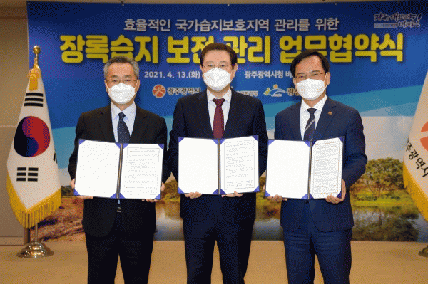 [¹Ìµð¾îÀü³² Á¦°¥´ëÁ¾ ±âÀÚ] ±¤ÁÖ±¤¿ª½Ã¿Í ¿µ»ê°À¯¿ªÈ¯°æÃ», ±¤»ê±¸°¡ ±¹³» ÃÖÃÊ µµ½É ¼Ó ±¹°¡½ÀÁö º¸È£Áö¿ªÀ¸·Î ÁöÁ¤µÈ Àå·Ï½ÀÁöÀÇ »ýÅÂ°è º¸È£¿Í ȯ°æº¸ÀüÀ» À§ÇØ ¼ÕÀ» ¸ÂÀâ¾Ò´Ù. ±¤ÁÖ±¤¿ª½Ã, ¿µ»ê°À¯¿ªÈ¯°æÃ», ±¤»ê±¸´Â 13ÀÏ ¿ÀÀü ¡¦