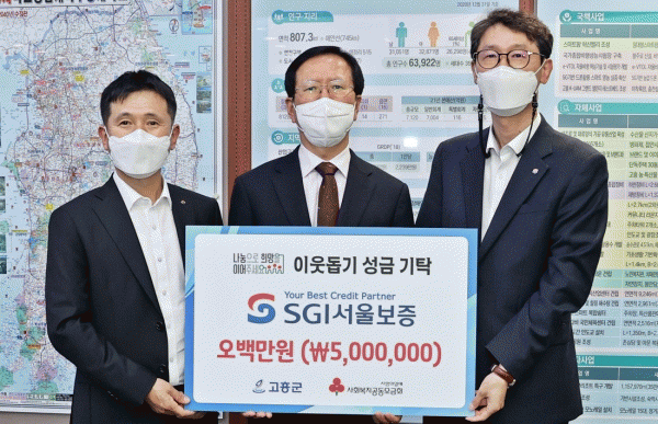 [¹Ìµð¾îÀü³² Á¦°¥´ëÁ¾ ±âÀÚ] °íÈﱺÀº Áö³ 12ÀÏ SGI¼¿ïº¸Áõ°ú Ãë¾à°èÃþ Áö¿øÀ» À§ÇÑ ¼º±Ý 500¸¸¿øÀ» Àü´ÞÇÏ´Â ±âʽÄÀ» °¡Á³´Ù. À̳¯ ±âŹ½Ä¿¡´Â ¼Û±Í±Ù ±º¼ö¿Í SGI¼¿ïº¸Áõ Áߺκ»ºÎ À±¿õ¼ö º»ºÎÀå, ±è¸íÁø ¼øÃµÁöÁ¡ÀåÀÌ Âü¼®Çß´Ù. ¡¦