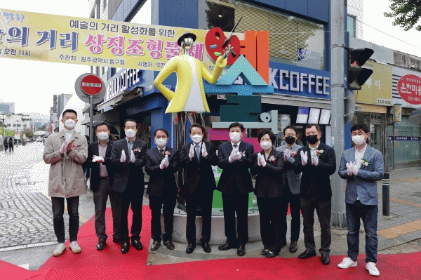 [¹Ìµð¾îÀü³² ±èÁ¤¿ì ±âÀÚ] ±¤ÁÖ µ¿±¸´Â ½Ã¹ÎÂü¿© ¿¹»ê»ç¾÷À¸·Î ÃßÁøÇÑ ¿¹¼úÀÇ °Å¸® »ó¡Á¶Çü¹°ÀÌ ¼³Ä¡ ¿Ï·áµÊ¿¡ µû¶ó 12ÀÏ Á¦¸·½ÄÀ» °³ÃÖÇß´Ù°í ¹àÇû´Ù. À̳¯ Á¦¸·½ÄÀº Äڷγª19 ÀçÈ®»ê ¹æÁö¸¦ À§ÇØ »çȸÀû °Å¸®µÎ±â ¹æ¿ª¼öÄ¢À» ÁؼöÇÑ ¡¦