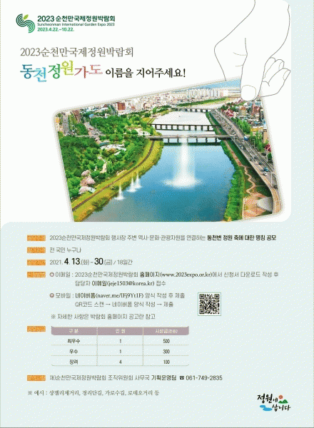 [¹Ìµð¾îÀü³² ÀüÇü¼º ±âÀÚ] ¼øÃµ¸¸±¹Á¦Á¤¿ø¹Ú¶÷ȸ Á¶Á÷À§¿øÈ¸´Â ¹Ú¶÷ȸÀÇ ÇÙ½É °ø°£ »ó¡¼ºÀ» ÁöĪÇÏ´Â ¡®¼øÃµ Á¤¿ø°¡µµ¡¯ÀÇ ¸íĪÀ» ¿À´Â 4¿ù 30ÀϱîÁö °ø¸ðÇÑ´Ù. °¡Äª¡®¼øÃµ Á¤¿ø°¡µµ¡¯´Â °Ã»¼öº¯°ø¿ø¿¡¼ ¼øÃµ¸¸½ÀÁö±îÁö ¾à 14.5km ¡¦