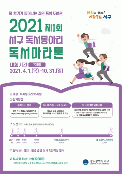 [¹Ìµð¾îÀü³² ±èÁ¤¿ì ±âÀÚ] ±¤ÁÖ ¼±¸°¡ ½Ã¹Îµé¿¡°Ô Ã¥ Àд ±â»ÝÀ» ´À³¢°Ô Çϰí Ã¥ Àд ¹®È¸¦ Çü¼º½Ã۱â À§ÇÑ µ¶¼¿îµ¿À¸·Î¡®Á¦1ȸ ¼±¸ µ¶¼µ¿¾Æ¸® µ¶¼¸¶¶óÅæ¡¯´ëȸ¸¦ ÁøÇàÇÑ´Ù. ÀÌ ´ëȸ´Â µ¶¼µ¿¾Æ¸®·Î µî·ÏµÈ 95°³ÆÀÀ» ´ë»óÀ¸·Î¡¦