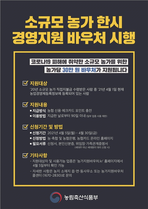[¹Ìµð¾îÀü³² ÀüÇü¼º ±âÀÚ] ±¤¾ç½Ã´Â Á¤ºÎÀÇ 4Â÷ Àç³Áö¿ø±Ý °èȹ¿¡ µû¶ó Äڷγª19 ÇÇÇØ Ãë¾à°èÃþÀÎ ¼Ò±Ô¸ð ³ó°¡¸¦ ´ë»óÀ¸·Î °¡±¸´ç 30¸¸¿øÀ» Áö¿øÇÏ´Â ¡®¼Ò±Ô¸ð ³ó°¡ Çѽà °æ¿µÁö¿ø ¹Ù¿ìó¡¯ »ç¾÷À» ÃßÁøÇÑ´Ù. Áö¿ø ´ë»óÀº 2020³â¿¡ ±âº»¡¦