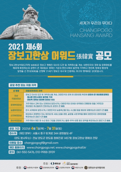 [¹Ìµð¾îÀü³² Á¦°¥´ëÁ¾ ±âÀÚ] »ç´Ü¹ýÀÎ À庸°í±Û·Î¹úÀç´ÜÀº ´ëÇѹα¹ÀÇ °æÁ¦ ¹× ¹®È ¿µÅä È®Àå¿¡ °øÇåÇÑ Àç¿Üµ¿Æ÷ °æÁ¦ÀÎÀ» ´ë»óÀ¸·Î 4¿ù 1ÀϺÎÅÍ 7¿ù 31ÀϱîÁö 4°³¿ù µ¿¾È ¡®Á¦6ȸ À庸°íÇÑ»ó ¾î¿öµå¡¯ ÇåÁ¤ÀÚ¸¦ °ø¸ðÇÑ´Ù°í ¹àÇû´Ù. À塦