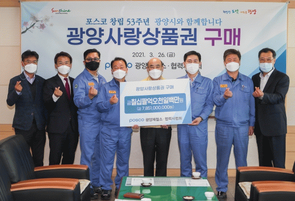 [¹Ìµð¾îÀü³² ÀüÇü¼º ±âÀÚ] ±¤¾ç½Ã°¡ Æ÷½ºÄÚ ±¤¾çÁ¦Ã¶¼Ò¡¤Çù·Â»çÇùȸ¿Í 3¿ù 26ÀÏ ±¤¾ç½ÃÀå Á¢°ß½Ç¿¡¼ 78¾ï 5õ¸¸¿ø »ó´çÀÇ ±¤¾ç»ç¶û»óǰ±Ç ±¸¸Å ¾àÁ¤½ÄÀ» °¡Á³´Ù. Æ÷½ºÄÚ Ã¢¸³ 53Áֳ⠱â³äÀÏÀ» ¾ÕµÎ°í Äڷγª19 ±Øº¹À» À§ÇÑ Áö¿ª »ó»ý¹ß¡¦