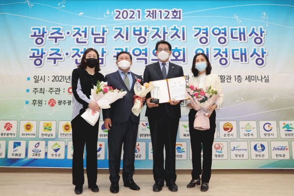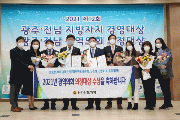 [¹Ìµð¾îÀü³² Á¦°¥´ëÁ¾ ±âÀÚ] Àü³²µµÀÇȸ °æÁ¦°ü±¤¹®ÈÀ§¿øÈ¸´Â 24ÀÏ ±¤ÁÖ ¿°ÁÖüÀ°°ü¿¡¼ °³ÃÖµÈ ±¤³²ÀϺ¸ ÁÖÃÖ 2021³â ±¤¿ªÀÇȸ ÀÇÁ¤´ë»ó ½Ã»ó½Ä¿¡¼ ÀÌÇöâ À§¿øÀåÀ» ºñ·ÔÇØ ¿ì½ÂÈñ¡¤½Å¹ÎÈ£¡¤³ª±¤±¹ ÀÇ¿øÀÌ ÀÇÁ¤´ë»óÀ» ¼ö»óÇß´Ù. ÀÇÁ¤¡¦