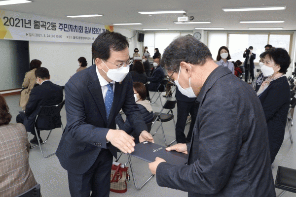 [¹Ìµð¾îÀü³² ±èÁ¤¿ì ±âÀÚ] ±è»ïÈ£ ±¤»ê±¸Ã»ÀåÀº 24ÀÏ ¿ÀÀü ¿ù°î2µ¿ ÇàÁ¤º¹Áö¼¾ÅÍ¿¡¼ ¿¸° ¡®2021³â ½Ã¹üµ¿ ÁÖ¹ÎÀÚġȸ ÀÓ½ÃȸÀÇ¡¯¿¡ Âü¼®Çß´Ù. ±è ±¸Ã»ÀåÀº À̳¯ ¿ù°î2µ¿ ÁÖ¹ÎÀÚÄ¡À§¿ø 57¸í¿¡°Ô À§ÃËÀåÀ» ¼ö¿©Çß´Ù. ±è ±¸Ã»ÀåÀº ¡°ÁÖ¡¦