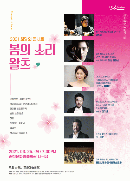 [¹Ìµð¾îÀü³² ÀüÇü¼º ±âÀÚ] ¼øÃµ½Ã´Â Çѱ¹À» ºû³½ À½¾Ç°¡µéÀ» ÃÊÃ»ÇØ °¡°î, ¿ÀÆä¶ó ¾Æ¸®¾Æ¿Í Áßâ, ÁöÈÖÀÚÀÇ Àç¹ÌÀÖ´Â ÇØ¼³ÀÌ ÀÖ´Â °ø¿¬ ¡®2021 Èñ¸ÁÀÇ ÄܼƮ¡¯¸¦ ¿À´Â 25ÀÏ Àú³á 7½Ã 30ºÐ ¹®È¿¹¼úȸ°ü ´ë±ØÀå¿¡¼ °³ÃÖÇÑ´Ù. À̹ø °ø¡¦