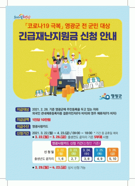 [¹Ìµð¾îÀü³² Á¦°¥´ëÁ¾ ±âÀÚ] ¿µ±¤±ºÀº Äڷγª19 °¨¿°º´ Àç³»óȲÀÇ Àå±âÈ·Î °æÁ¦Àû ¾î·Á¿ò¿¡ óÇÑ ±º¹ÎÀÇ »ýȰ¾ÈÁ¤ ¹× ħüµÈ Áö¿ª°æÁ¦ Ȱ¼ºÈ À§ÇØ ¡®¡®Äڷγª19 ±Øº¹¡¯Àü ±º¹Î ´ë»ó ±ä±ÞÀç³Áö¿ø±Ý Áö±Þ¡¯À» ¿À´Â 22ÀϺÎÅÍ ½ÃÀÛÇÑ´Ù°í¡¦