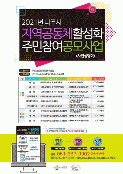 [¹Ìµð¾îÀü³² ¹Úº¹»ê ±âÀÚ] ³ªÁֽðøÀÍȰµ¿Áö¿ø¼¾ÅÍ´Â 2021³â Áö¿ª°øµ¿Ã¼ Ȱ¼ºÈ ÁÖ¹ÎÂü¿© °ø¸ð»ç¾÷À» ÃßÁøÇÑ´Ù°í 11ÀÏ ¹àÇû´Ù. Áö³ 2018³âºÎÅÍ ÃßÁøÇØ ¿Â Áö¿ª°øµ¿Ã¼ Ȱ¼ºÈ ÁÖ¹ÎÂü¿© °ø¸ð´Â ÁֹΠÂü¿© ¸ðÀÓ°ú ¹Î°£ Ä¿¹Â´ÏƼ °ø°£À»¡¦