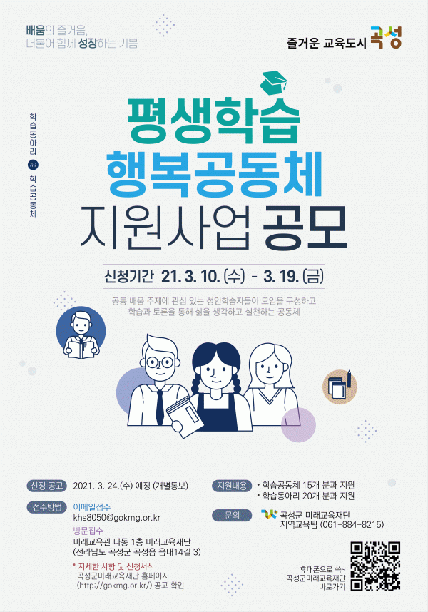 [¹Ìµð¾îÀü³² Á¦°¥´ëÁ¾ ±âÀÚ] °î¼º±º ¹Ì·¡±³À°Àç´ÜÀÌ ½º½º·Î ÇнÀÇϰí ÇÔ²² ¼ºÀåÇÏ´Â Áö¿ª¹®È Á¶¼º¿¡ Àû±Ø ³ª¼°í ÀÖ´Ù. Àç´ÜÀº 3¿ù 19ÀϱîÁö Æò»ýÇнÀ Çູ°øµ¿Ã¼ ½ÅûÀ» ¹Þ°í ÀÖ´Ù. ¼ºÀÎÀÌ µÇ¾î¼µµ ¹è¿ò°ú ´ÜÀýµÇ´Â °ÍÀÌ ¾Æ´Ï¶ó Áñ¡¦