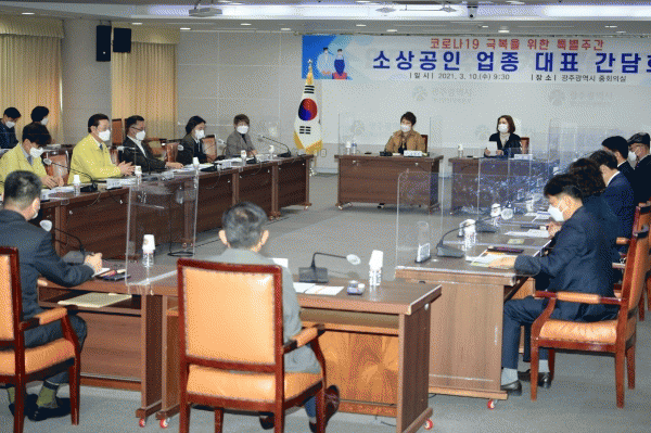 [¹Ìµð¾îÀü³² Á¦°¥´ëÁ¾ ±âÀÚ] ±¤ÁÖ±¤¿ª½Ã´Â 10ÀÏ ½Ãû ÁßȸÀǽǿ¡¼ Áö¿ª ¼Ò»ó°øÀÎ ¾÷Á¾ ´ëÇ¥µé°ú °£´ãȸ¸¦ °®°í Äڷγª19 Àå±âÈ·Î ÀÎÇØ ÇöÀå¿¡¼ °Þ°í ÀÖ´Â ¾Ö·Î¿Í °ÇÀÇ»çÇ×À» °¡°¨ ¾øÀÌ µè°í ´ëÃ¥À» ¸ð»öÇß´Ù. À̿뼷 ½ÃÀåÀÌ ÁÖÀçÇÑ °£¡¦