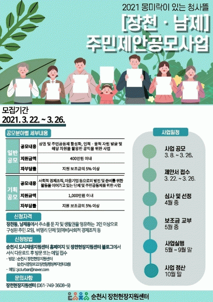 [¹Ìµð¾îÀü³² ÀüÇü¼º ±âÀÚ] ¼øÃµ½Ã´Â µµ½ÃÀç»ý ´ºµô »ç¾÷Áö¿ªÀ» ´ë»óÀ¸·Î 2021³â ÁÖ¹ÎÁ¦¾È °ø¸ð»ç¾÷ Âü°¡ÀÚ¸¦ ¸ðÁýÇÑ´Ù. µµ½ÃÀç»ý ÁÖ¹ÎÁ¦¾È °ø¸ð»ç¾÷Àº Áö¿ª ÀÚ¿øÀ» ¹ß±¼Çϰí Áö¿ªÀÇ ¹®Á¦Á¡À» ÇØ°áÇÏ´Â °úÁ¤¿¡¼ ÀÚ¿¬½º·´°Ô ÁֹΠ°øµ¿Ã¼¸¦¡¦