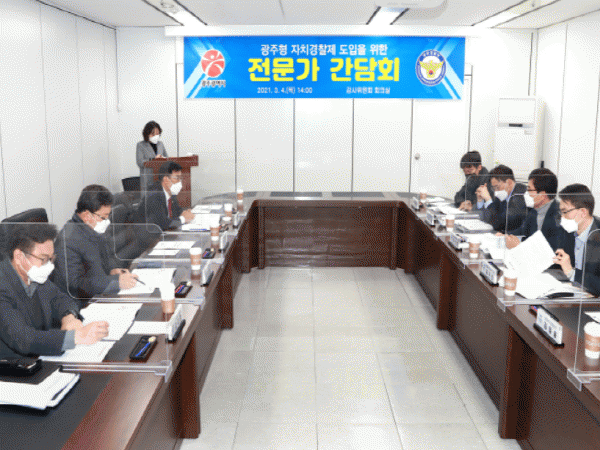 [¹Ìµð¾îÀü³² Á¦°¥´ëÁ¾ ±âÀÚ]±¤ÁÖ±¤¿ª½Ã¿Í ±¤ÁÖ°æÂûûÀº 4ÀÏ ¿ÀÈÄ ½Ãû °¨»çÀ§¿øÈ¸ ȸÀǽǿ¡¼ ¡®±¤ÁÖÇü ÀÚÄ¡°æÂûÁ¦¡¯ µµÀÔÀ» À§ÇÑ ºÐ¾ßº° Àü¹®°¡ ÀÚ¹® °£´ãȸ¸¦ °¡Á³´Ù. À̳¯ °£´ãȸ¿¡´Â ÀÌÈ«ÀÏ ±¤ÁÖ½ÃÀÇȸ ÇàÁ¤ÀÚÄ¡À§¿øÀå, ±â¿ì½Ä Âü¡¦