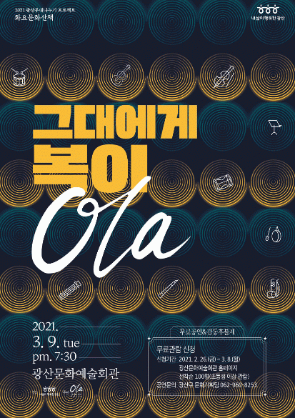 [¹Ìµð¾îÀü³² ±èÁ¤¿ì ±âÀÚ]Ç»Àü±¹¾Ç¹êµå ¡®¿Ã¶ó(Ola)¡¯°¡ 9ÀÏ ±¤»ê¹®È¿¹¼úȸ°ü¿¡¼ '±×´ë¿¡°Ô º¹ÀÌ Ola!'°ø¿¬À» ¿¬´Ù. À̳¯ °ø¿¬Àº û³â¿¹¼úÀο¡°Ô °ø¿¬ ¹«´ë¸¦ ³ª´² Àü¹®¿¹¼úÀÎÀ¸·Î ¹ßµ¸¿òÇÒ ¼ö ÀÖµµ·Ï Áö¿øÇÏ´Â ±¤»ê±¸ÀÇ ¤¤¤Æ¤ªÈ¿ä¹®¡¦