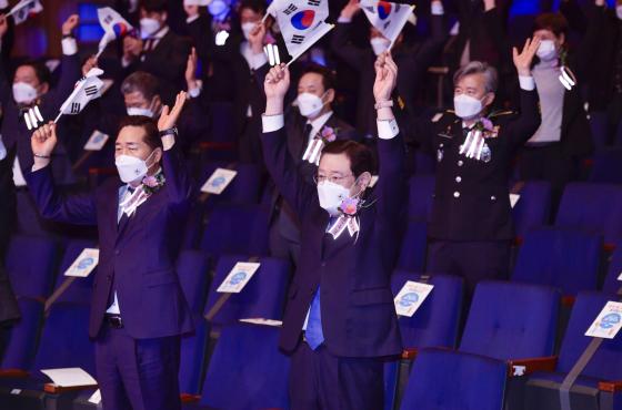[¹Ìµð¾îÀü³² Á¦°¥´ëÁ¾ ±âÀÚ] À̿뼷 ±¤ÁÖ±¤¿ª½ÃÀåÀÌ 1ÀÏ ¿ÀÀü ½Ãû ´ëȸ½Ç¿¡¼ ¿¸° Á¦102ÁÖ³â 3‧1Àý ±â³ä½Ä¿¡ Âü¼®ÇØ ±è¿ëÁý ±¤ÁÖ½ÃÀÇȸ ÀÇÀå, ÀåÈÖ±¹ ±¤Áֽñ³À°°¨, ±¤º¹È¸¿ø µî°ú ¸¸¼¼»ïâÀ» Çϰí ÀÖ´Ù.