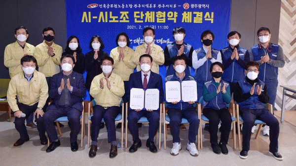 [¹Ìµð¾îÀü³² Á¦°¥´ëÁ¾ ±âÀÚ] ±¤ÁÖ±¤¿ª½Ã¿Í Àü±¹°ø¹«¿ø³ëµ¿Á¶ÇÕ ±¤ÁÖÁö¿ªº»ºÎ ±¤ÁÖ½ÃÁöºÎ´Â 19ÀÏ ½Ãû ´Ù¸ñÀûȦ¿¡¼ ¡®½Ã-½Ã³ëÁ¶ ´ÜüÇù¾à¡¯À» ü°áÇß´Ù. ½Ã³ëÁ¶´Â Áö³ 2019³â 6¿ù ÃÑ 98°³ Á¶¹® 167°³ Á¶Ç×ÀÇ ´Üü±³¼· ¿ä±¸¾ÈÀ» ±¤Áֽá¦