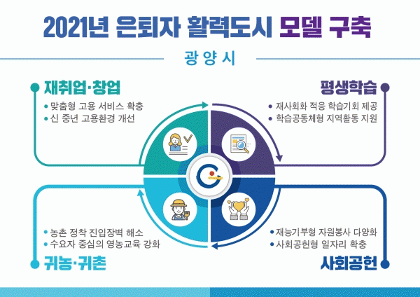 [¹Ìµð¾îÀü³² ÀüÇü¼º ±âÀÚ] ±¤¾ç½Ã°¡ 5060 ÀºÅðÀÚ Áö¿øÀ» À§ÇÑ Àα¸Á¤Ã¥ÀÇ ÀÏȯÀ¸·Î ¿ÃÇØ ÃßÁøÇÒ ¡®2021 ÀºÅðÀÚ È°·Âµµ½Ã ÇÁ·ÎÁ§Æ®¡¯ ½ÃÇà°èȹÀ» ¹ßÇ¥Çß´Ù. 2019³âºÎÅÍ ½ÃÇàµÈ ¡®ÀºÅðÀÚ È°·Âµµ½Ã ÇÁ·ÎÁ§Æ® »ç¾÷¡¯Àº ÀºÅð °í·ÉÀÚµéÀÌ °æÇ衦