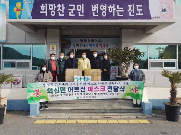 [¹Ìµð¾îÀü³² Á¦°¥´ëÁ¾ ±âÀÚ] Áøµµ±º ÀǽŸéÀÇ ÇÑ ºÀ»ç´Üü°¡ Áö¿ª ¾î¸£½Å 1,400¿©¸íÀ» ´ë»óÀ¸·Î ÃÑ 7,000¿©ÀåÀÇ ¸¶½ºÅ©¸¦ ±¸ÀÔ¡¤Àü´ÞÇß´Ù. ºÀ»ç´Üü ½ÅÀÇȸÀº ÃÖ±Ù ÀÓ¿ø°ú ȸ¿øµéÀÇ È¸ºñ·Î 65¼¼ ÀÌ»ó 1,421¸íÀÇ ¾î¸£½Åµé¿¡°Ô °³ÀÎ´ç ¸¶½º¡¦