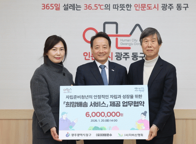 [¹Ìµð¾îÀü³² Á¦°¥´ëÁ¾ ±âÀÚ]±¤ÁÖ µ¿±¸´Â Áö³ 20ÀÏ (À¯)´ë¿µ¿î¼ö(´ëÇ¥ ±èÁ¤Áø), (»ç)ÀÚºñ½ÅÇàȸ¿Í ÇÔ²² ÀÚ¸³ Áغñû³âÀÇ ¾ÈÁ¤ÀûÀÎ »çȸ Á¤ÂøÀ» µ½±â À§ÇÑ ¡®Èñ¸Á¹è¼Û ¼ºñ½º¡¯ ¾÷¹«Çù¾àÀ» ü°áÇß´Ù°í ¹àÇû´Ù. À̹ø Çù¾àÀº ÀÚ¸³Áغñû³âµé¡¦