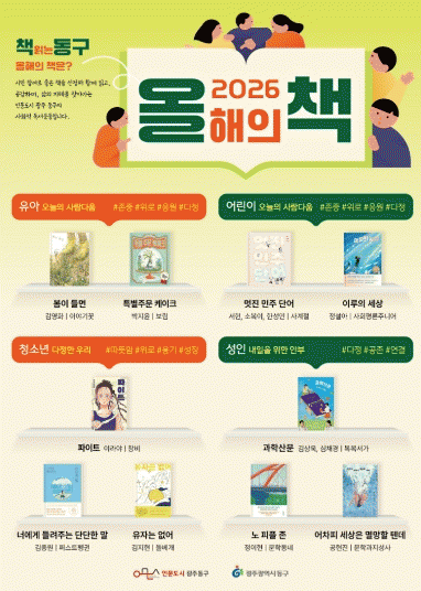 [¹Ìµð¾îÀü³² Á¦°¥´ëÁ¾ ±âÀÚ]±¤ÁÖ µ¿±¸´Â 2026 Ã¥ Àд µ¿±¸ »ç¾÷ÀÇ ÀÏȯÀ¸·Î ¡®¿ÃÇØÀÇ Ã¥¡¯ ÃÖÁ¾ ¼±Á¤ ȸÀǸ¦ °ÅÃÄ À¯¾Æ, ¾î¸°ÀÌ, û¼Ò³â, ¼ºÀÎ 4°³ ºÎ¹® ÃÑ 10±ÇÀÇ µµ¼¸¦ ¼±Á¤Çß´Ù°í ¹àÇû´Ù. µ¿±¸´Â Áö³ 1¿ùºÎÅÍ µ¶¼Àü¹®°¡ ¹× ÁֹΠ¡¦